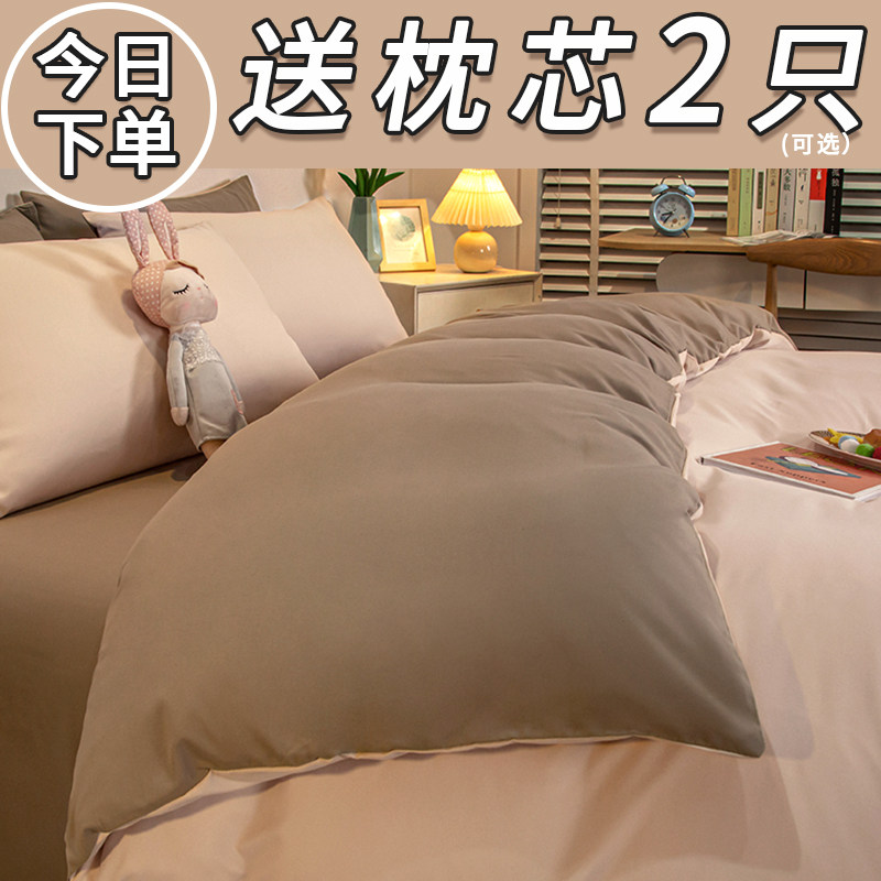 券 15元销量500水洗棉四件套磨毛床上用品被套学生宿舍床单人被子被罩三件套男女