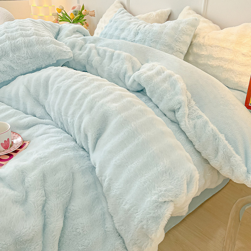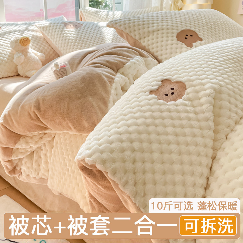 券 30元销量5002023新款牛奶绒四件套兔兔绒冬季珊瑚绒加厚绒被套法兰绒床单床笠