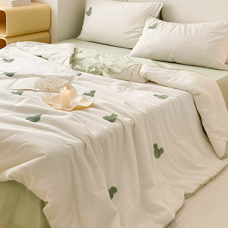 券 20元销量10夏季水洗棉空调被三四件套全棉毛巾绣夏凉被可机水洗宿舍单人被子