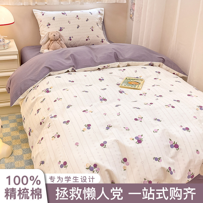 券 20元销量10清新纯棉床上四件套全棉100床单人被套被子大学生宿舍三件套床品4