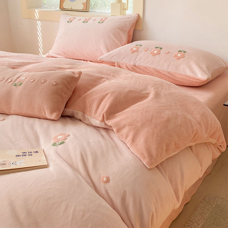券 30元销量100ins牛奶绒床上四件套冬季珊瑚绒法兰绒加厚绒被套儿童床单三件套4