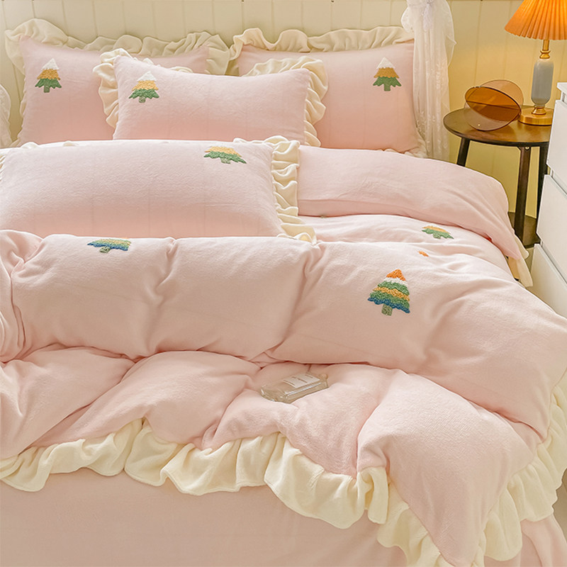 券 30元销量100公主牛奶绒床上四件套珊瑚绒冬季法莱法兰绒被套女床单三件套床品