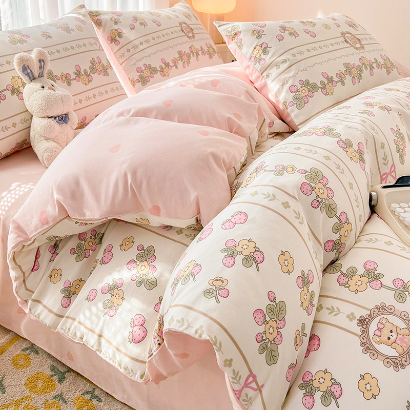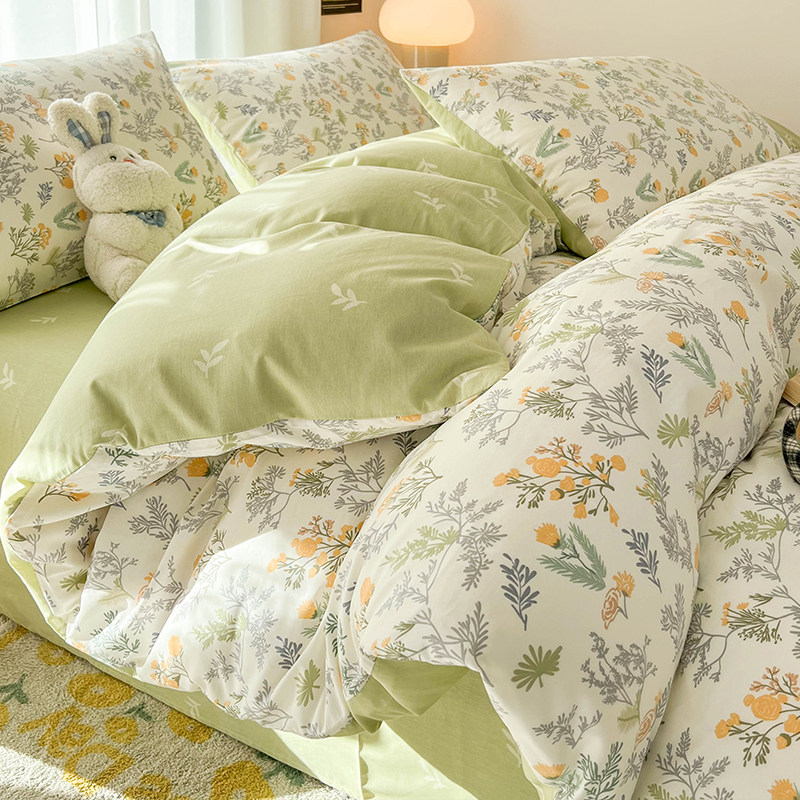 券 20元销量500小清新纯棉四件套全棉2023新款女床单被套床品宿舍床上三件套床笠