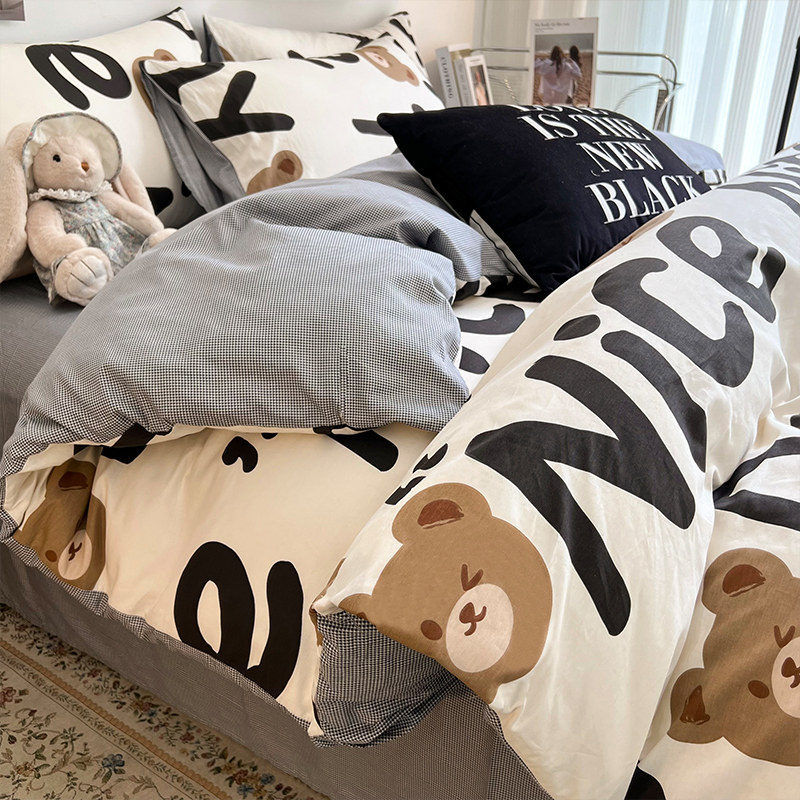 券 20元销量500秋冬季四件套全棉纯棉2023新款简约床品男床单被套床笠宿舍三件套