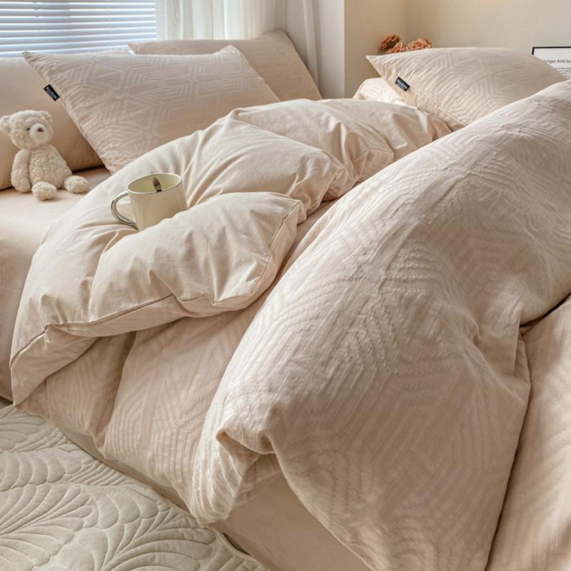 券 20元销量1000轻奢60S水洗棉床上四件套全棉纯棉100提花简约床单被套床笠三件套
