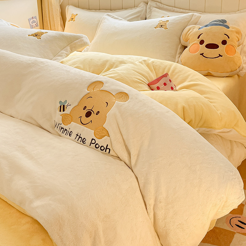 券 20元销量100迪士尼冬季加厚牛奶绒四件套珊瑚法兰绒儿童卡通被套床单床笠床品