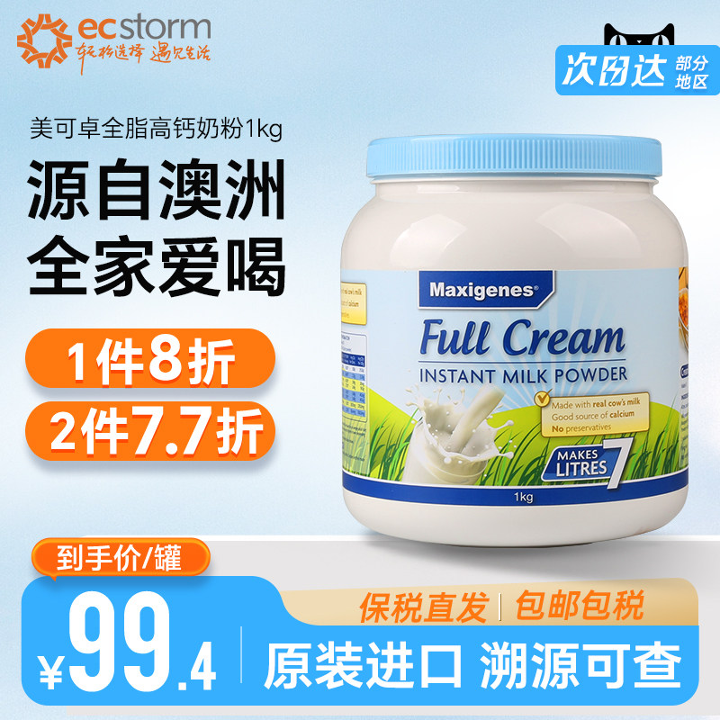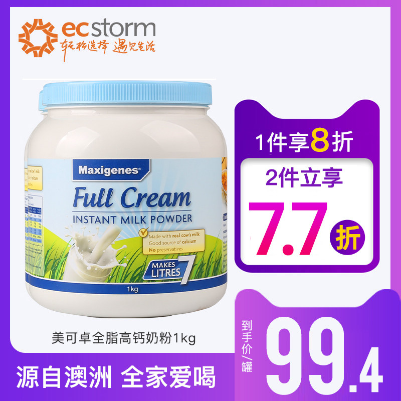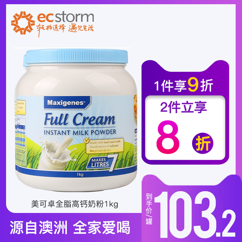 券 2元销量46澳洲美可卓蓝胖子全脂牛奶粉1kg 学生儿童成人早餐原装脱脂奶粉