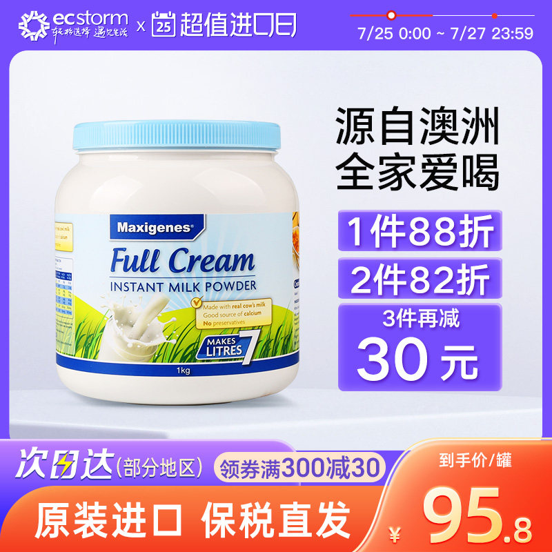 券 2元销量50澳洲美可卓蓝胖子全脂牛奶粉1kg 学生儿童成人早餐原装脱脂奶粉