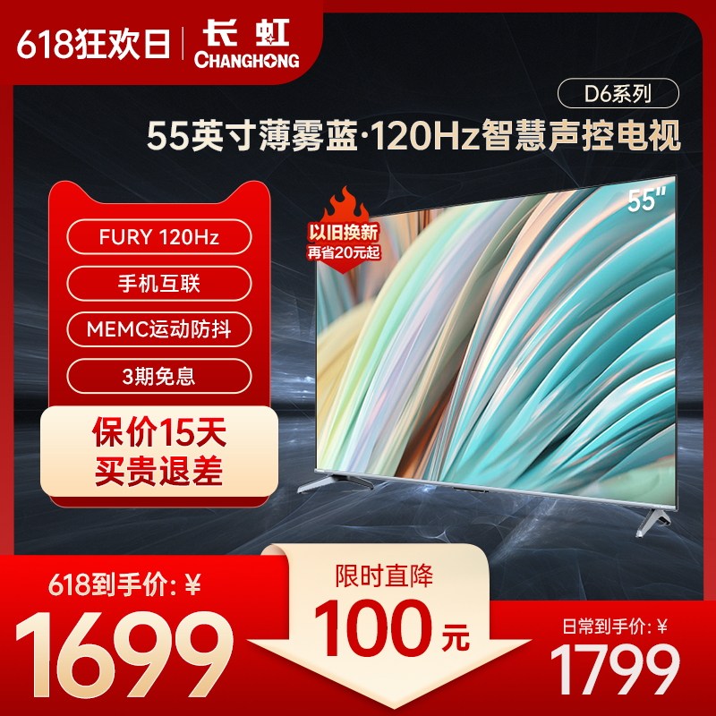 券 300元销量1长虹新品国色 D6 55英寸 120Hz 高刷语音杜比视界全面屏液晶电视