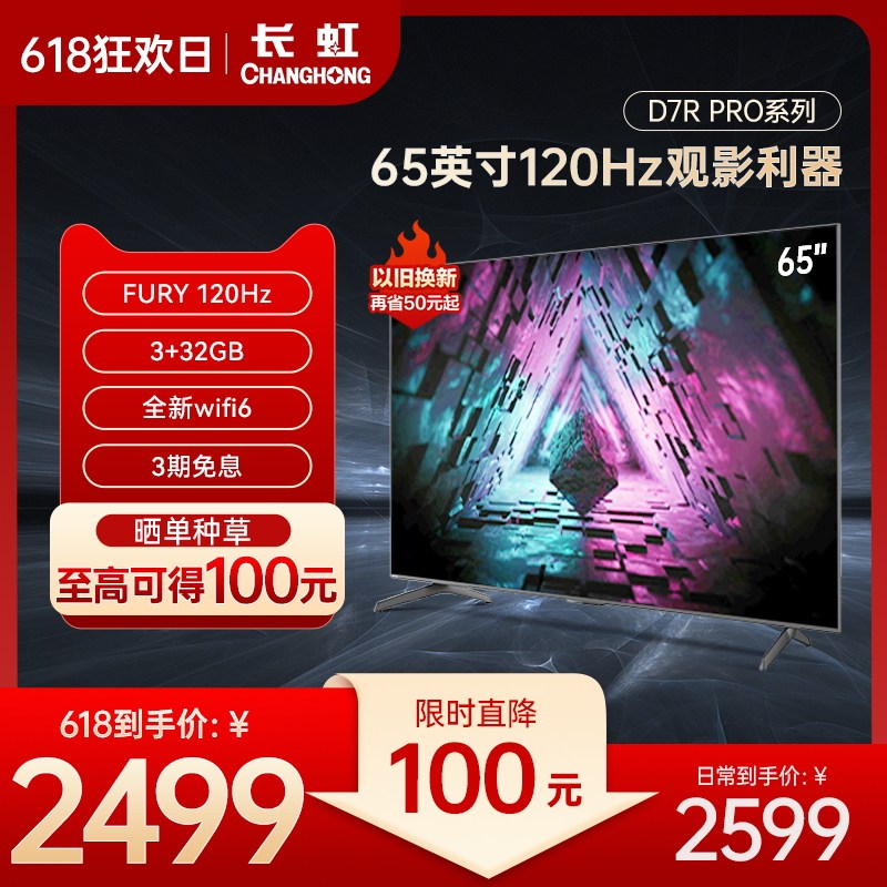 券 1100元销量0长虹电视65D6 65英寸120Hz高刷4K语音杜比视界全面屏超清液晶电视