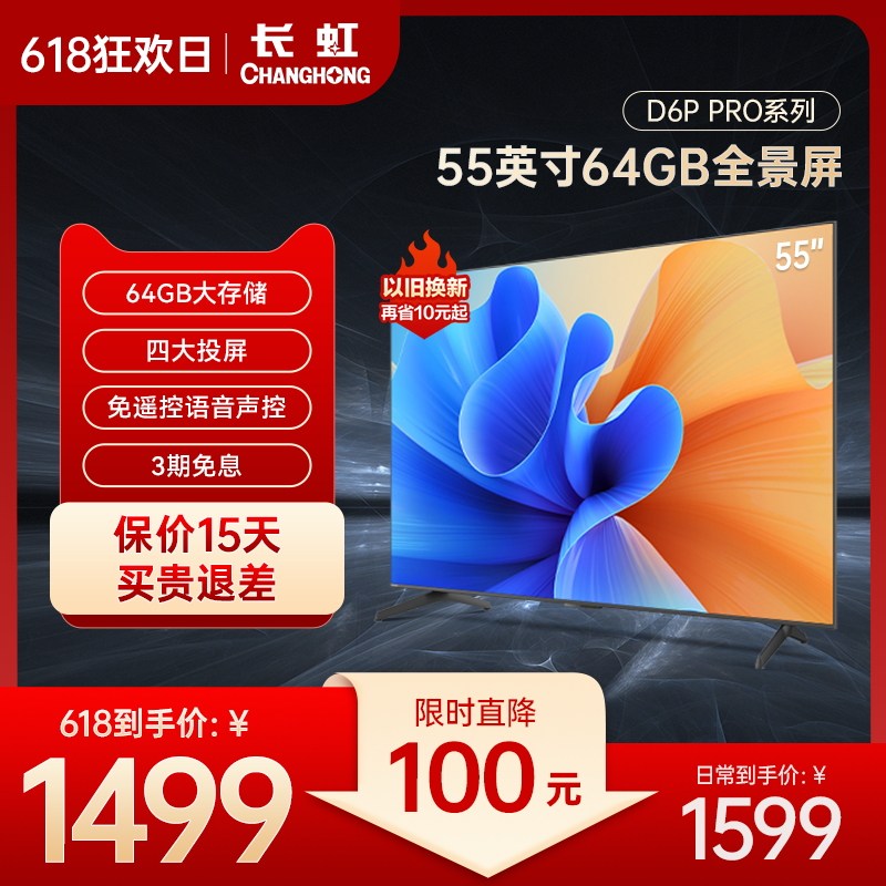 券 1550元销量38长虹官方旗舰店55D6P PRO 55英寸超高清智能语音智慧屏液晶电视65