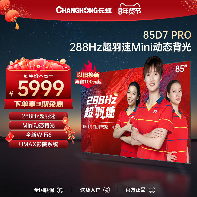 券 5元销量0长虹电视官方旗舰85D7 PRO 85英寸4K超清288Hz高刷电视机液晶大板