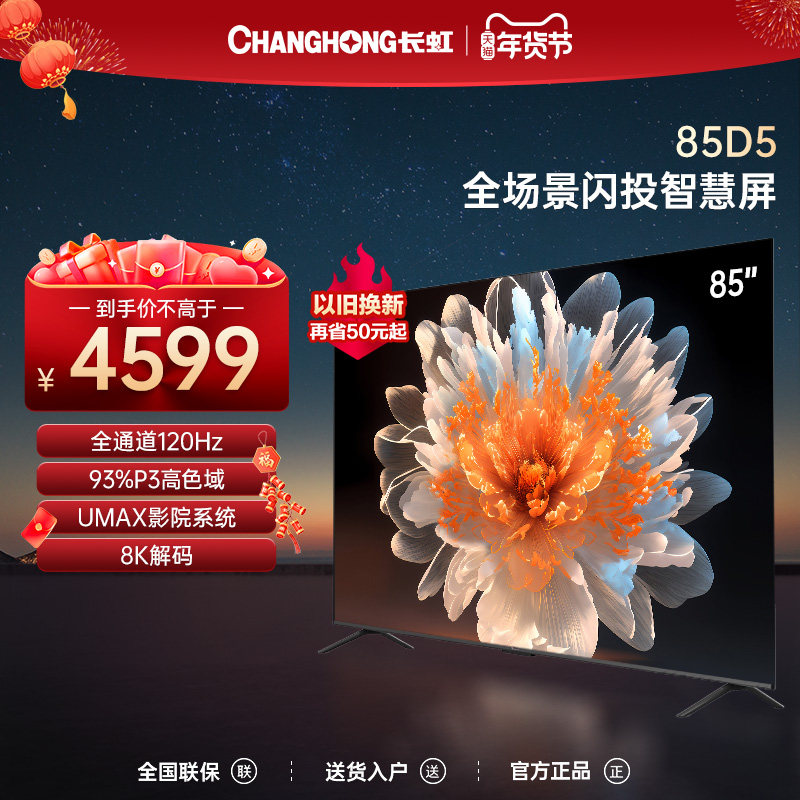 券 100元销量0长虹电视85D5 85英寸4K超清3+32GB杜比音画智能平板液晶LED电视机