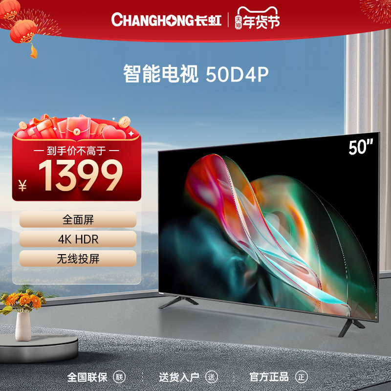 券 1元销量10长虹电视50D4P 50英寸智能4K高清超薄全面屏网络平板液晶电视机