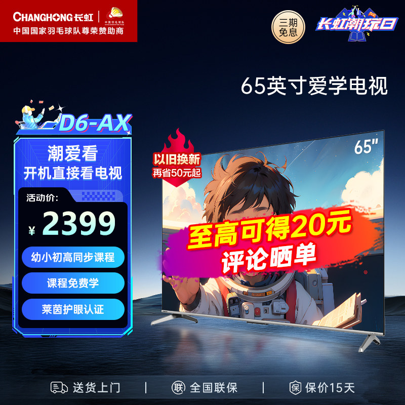 券 1100元销量67长虹65D6-AX 65英寸4K爱学电视课程教材同步免费学习教育平板电视
