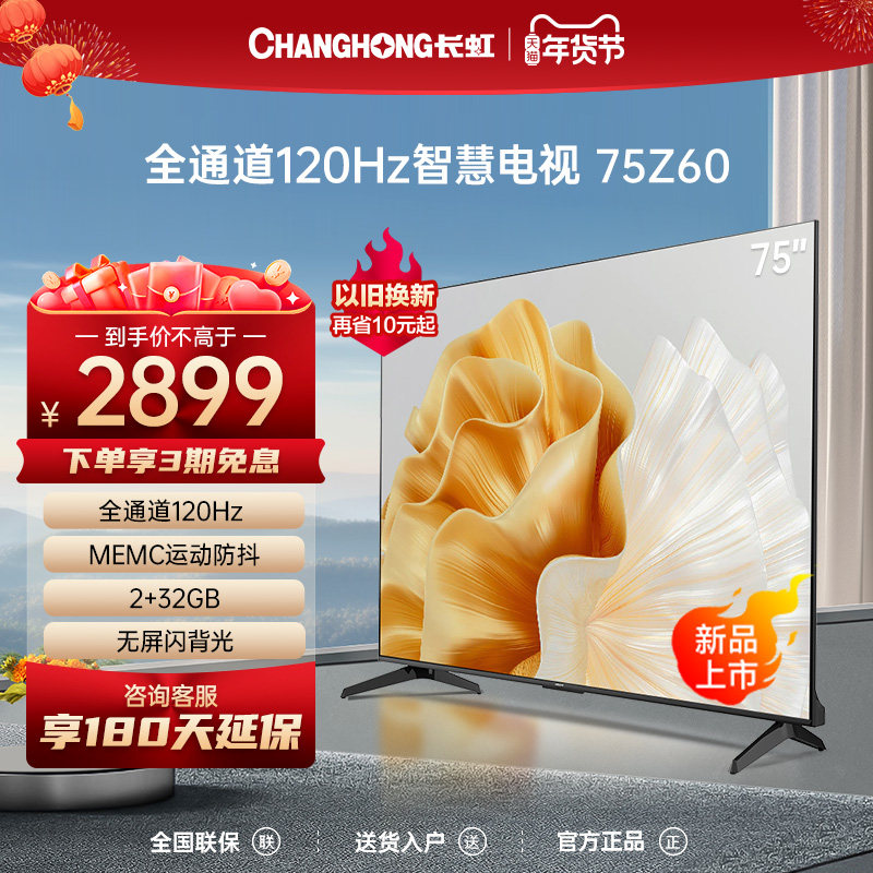 券 3元销量50长虹欧宝丽75Z60 75英寸全通道120Hz高刷2+32GB智能液晶电视机65