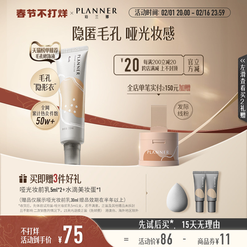 珀兰娜PLANNER修颜液隔离霜妆前乳素颜霜打底隐匿毛孔哑光雾面