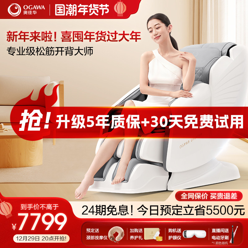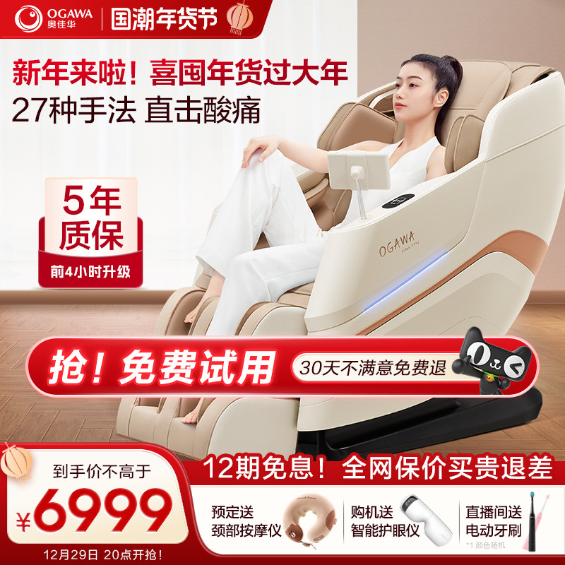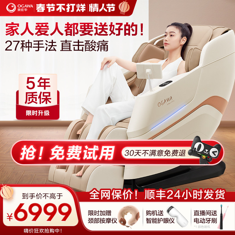 券 5000元销量50奥佳华7306S+按摩椅家用全身智能太空舱腰部背部颈椎电动按摩沙发
