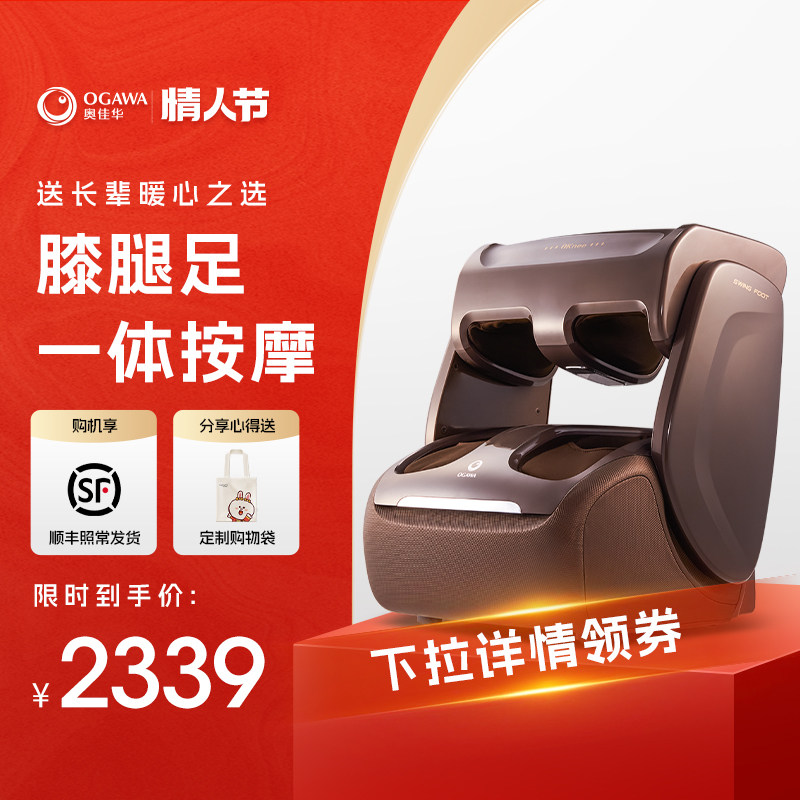 券 590元销量10奥佳华OG3208足疗机家用全自动脚底穴位揉捏按摩仪足底腿部按摩器