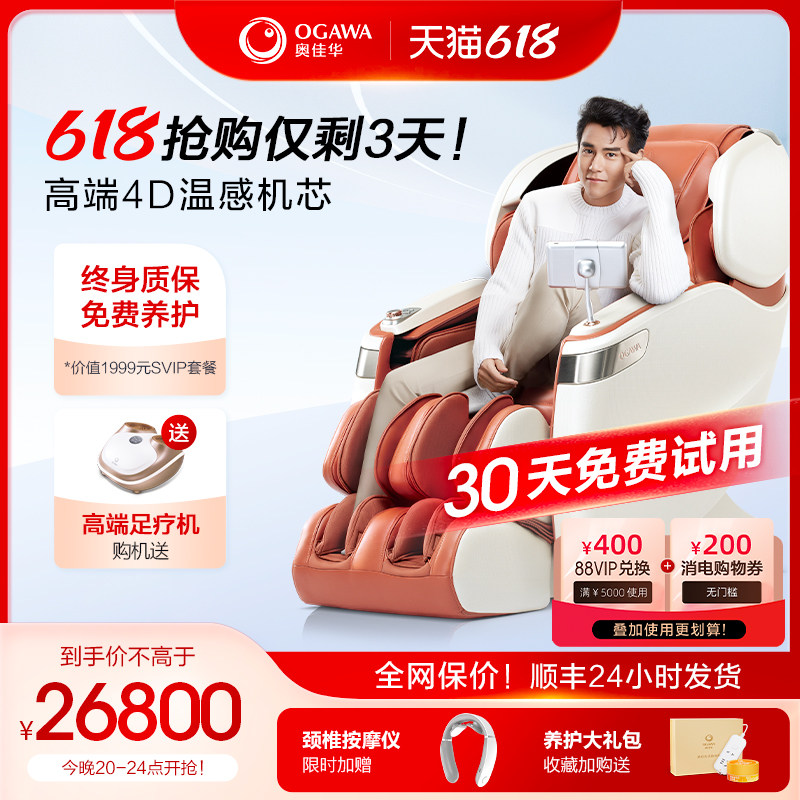 券 3820元销量100奥佳华7608GT+按摩椅家用全身智能豪华太空舱电动按摩沙发椅新款