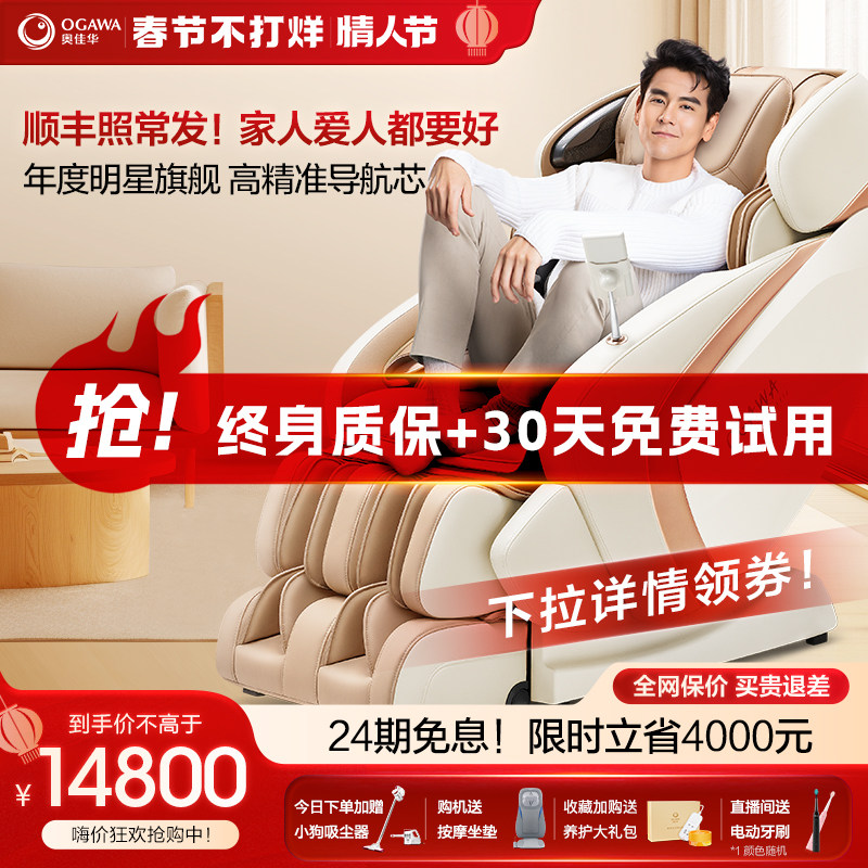 券 3620元销量10奥佳华7306按摩椅家用全身智能太空舱腰背部颈椎多功能按摩沙发椅