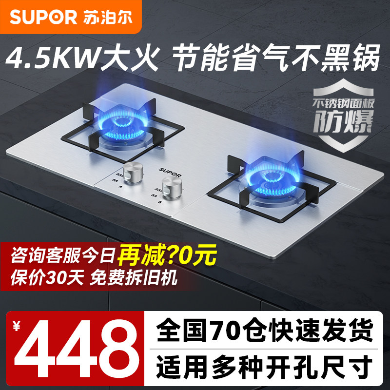 券 310元销量200苏泊尔不锈钢燃气灶煤气灶双灶家用液化气灶具嵌入式天然气炉灶台