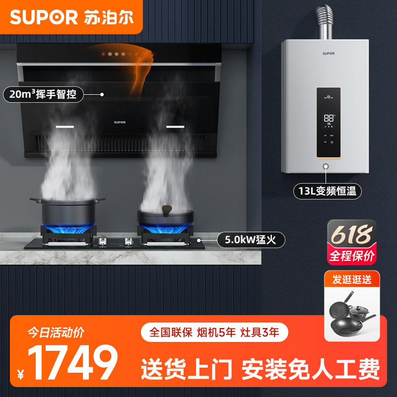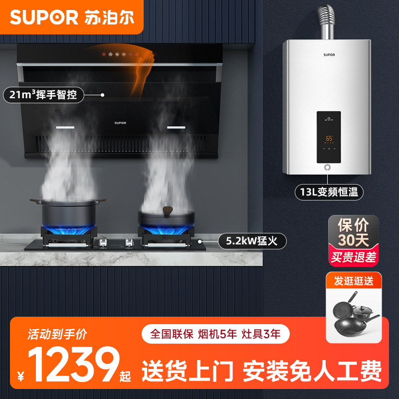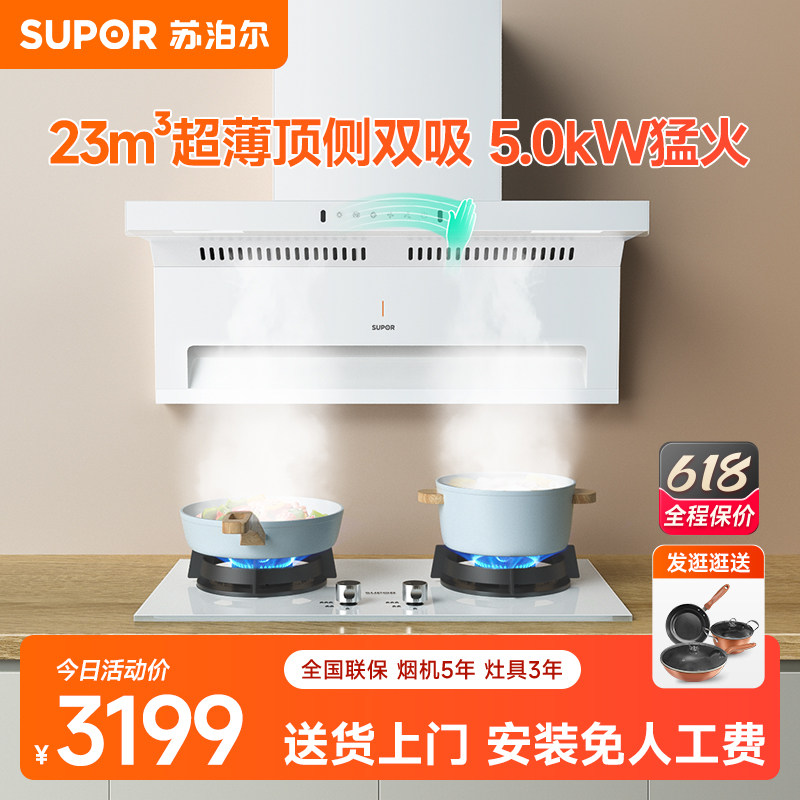 券 310元销量300苏泊尔UL19新款白色顶侧双吸抽油烟机燃气灶具套餐家用7字套装