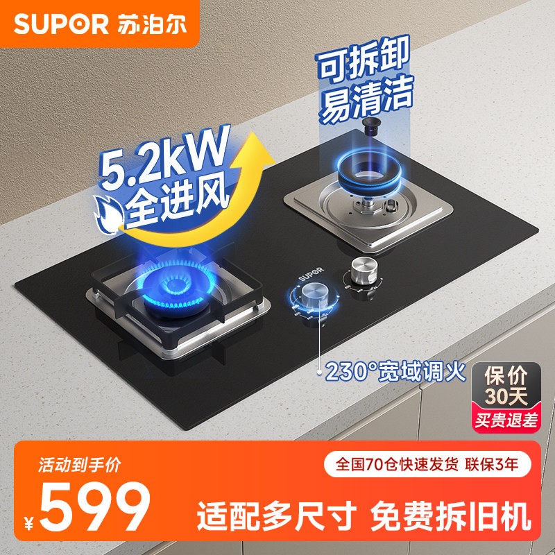 券 260元销量100苏泊尔B15燃气灶煤气灶双灶家用嵌入式炉灶天然气液化气灶具台式