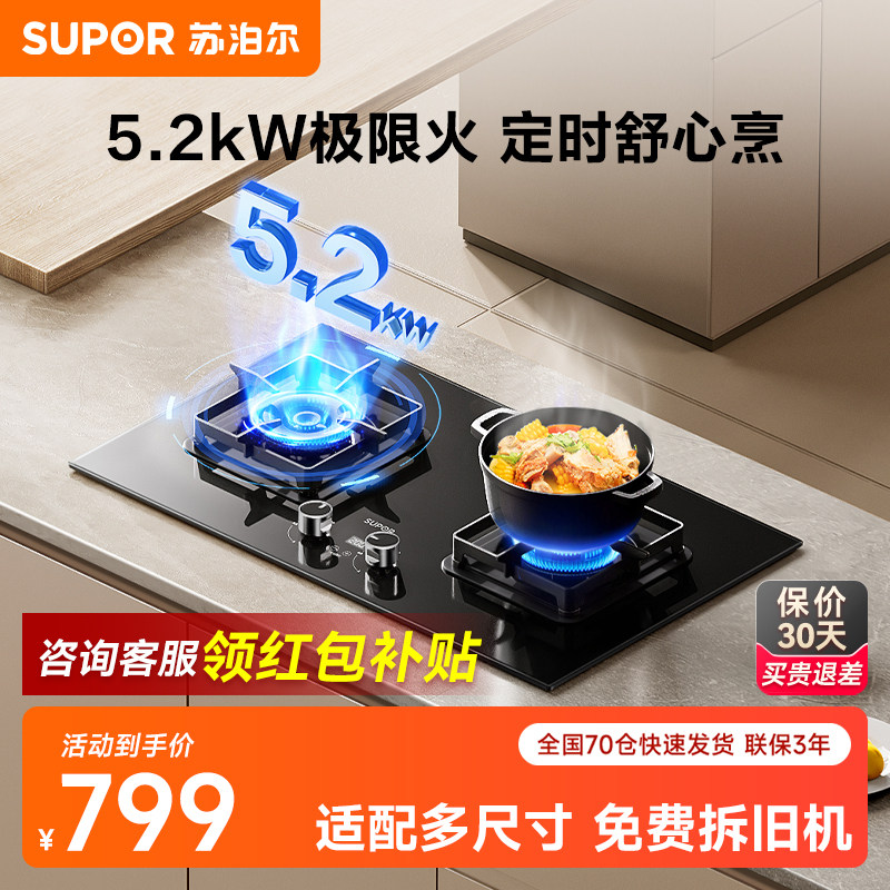 券 410元销量27苏泊尔Q8S定时燃气灶煤气灶双灶家用天然气灶炉灶台式液化气灶具