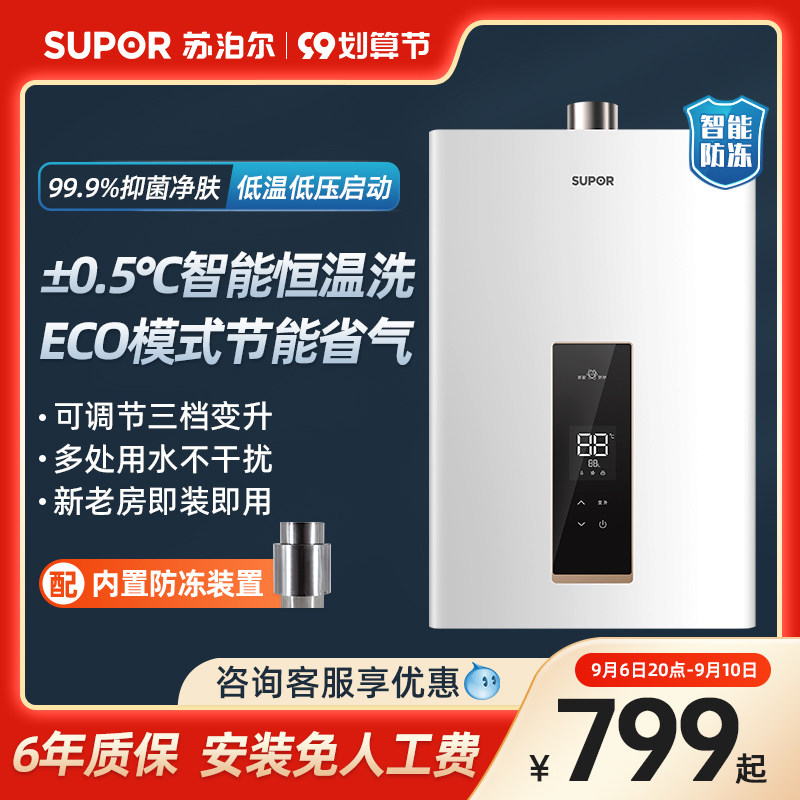 券 1500元销量100苏泊尔MM33燃气热水器电家用天然气13升16煤气洗澡恒温强排12L款