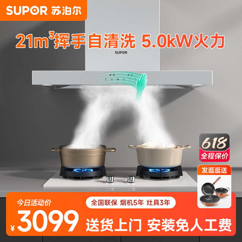 券 550元销量100苏泊尔MT18+MB35新品白色抽油烟机燃气灶套餐家用烟灶套装顶吸式
