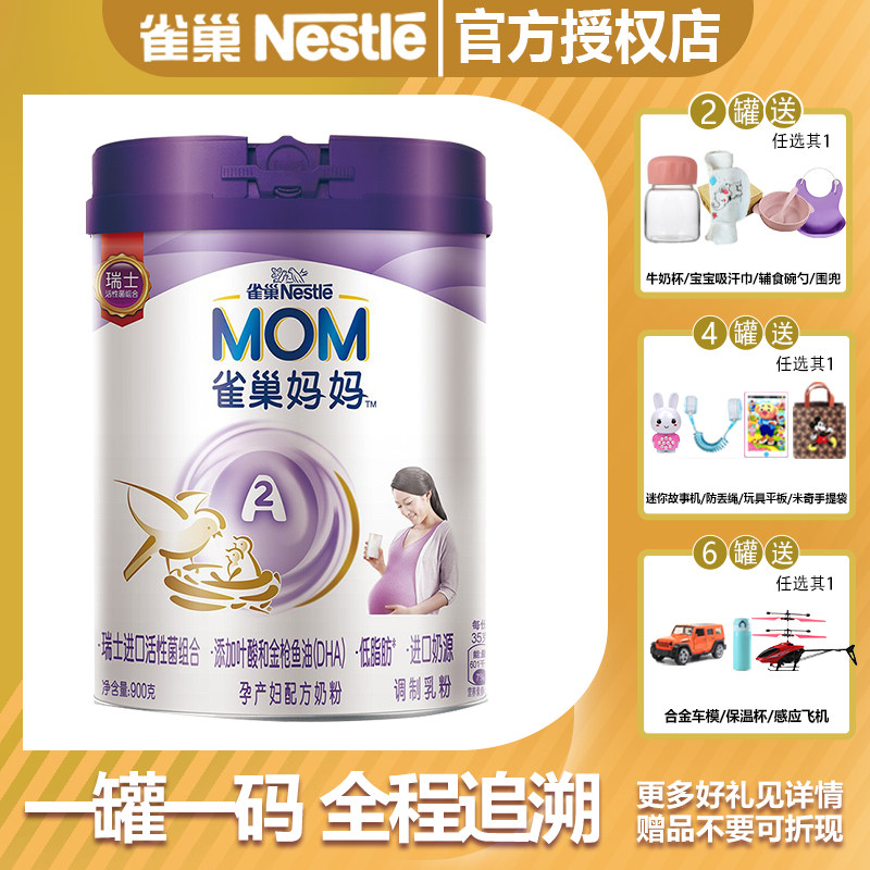 券 1元销量3雀巢A2孕妈孕妇奶粉900g孕期哺乳期产后奶粉无糖脱脂低脂罐装奶粉
