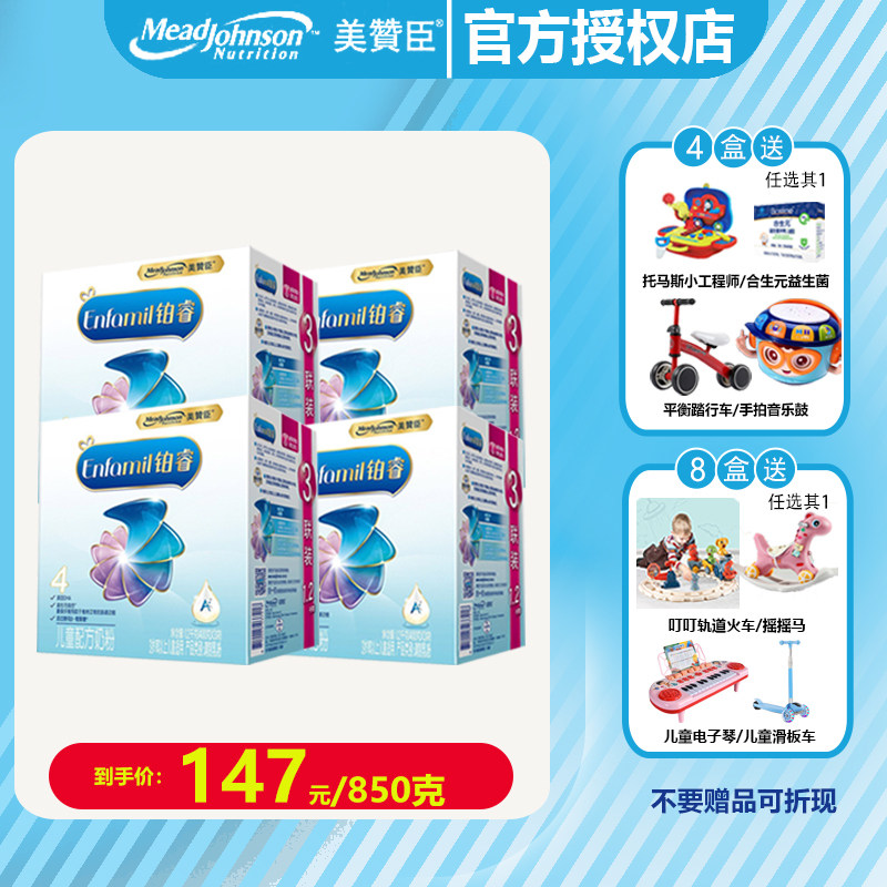 【147元/850克】22年2月产美赞臣4段铂睿儿童牛奶粉1200g*4盒