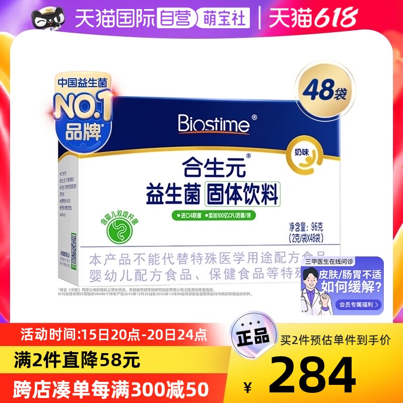 券 65元销量6000【自营】合生元益生菌粉奶味48袋×1盒有助 婴儿双歧杆菌调理进口