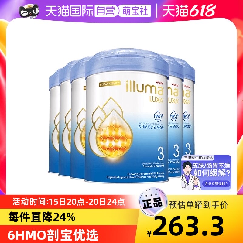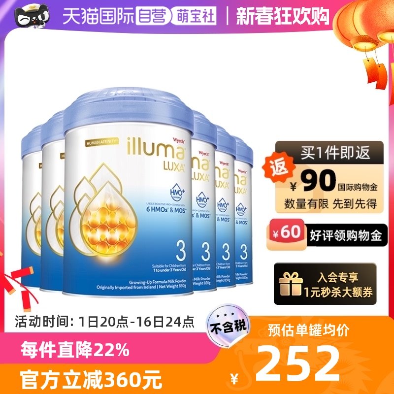 券 300元销量50【自营】惠氏启赋未来3段1-3岁6HMO婴幼儿奶粉进口850g*6剖宝顶配