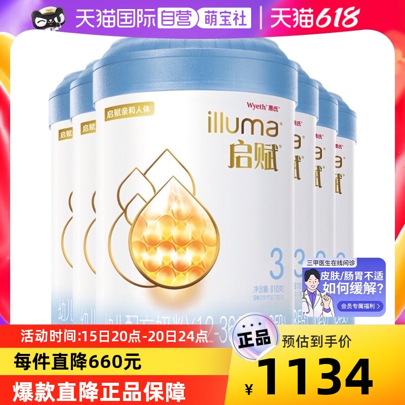 券 140元销量3【自营】【买6赠1】惠氏启赋未来3段婴幼儿奶粉6HMO剖宝顶配850*6