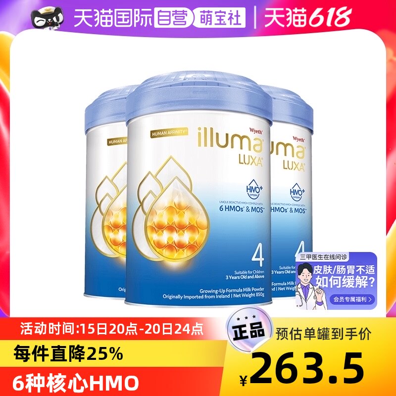 券 150元销量3【自营】惠氏启赋未来4段3-6岁6HMO儿童奶粉进口850g*3剖宝顶配