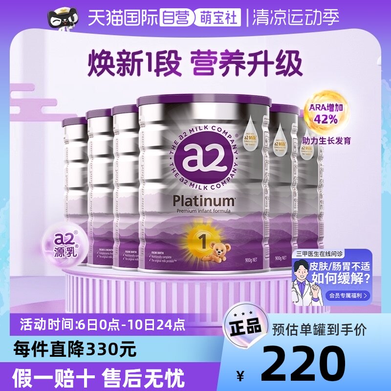 券 180元销量700【自营】a2新升级紫白金婴幼儿牛奶粉1段0-6个月宝宝乳粉900g*6罐