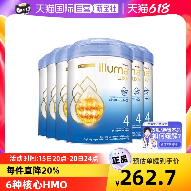 券 300元销量1【自营】惠氏启赋未来4段3-6岁6HMO儿童奶粉进口850g*6剖宝顶配