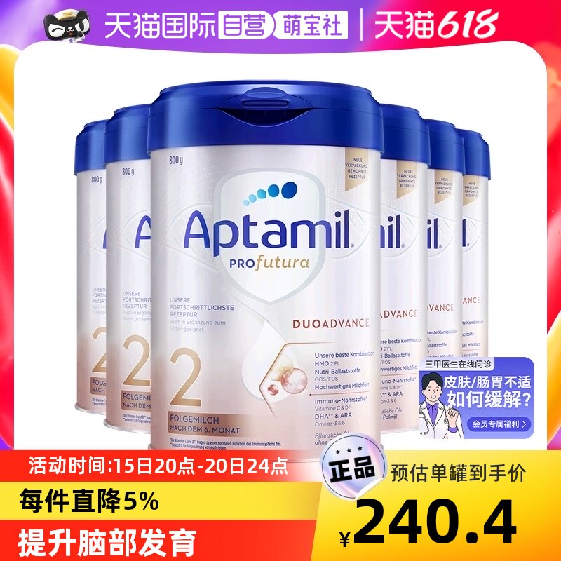 券 320元销量26【自营】爱他美白金德文版HMO婴幼儿配方奶粉2段6-12月*6罐