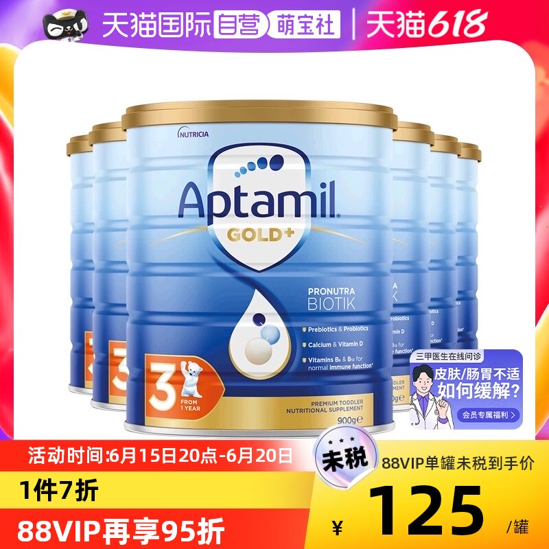 券 120元销量600新西兰爱他美aptamil进口金装较大婴儿配方奶粉3段牛奶粉*6罐装