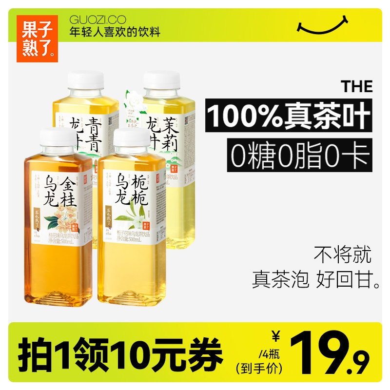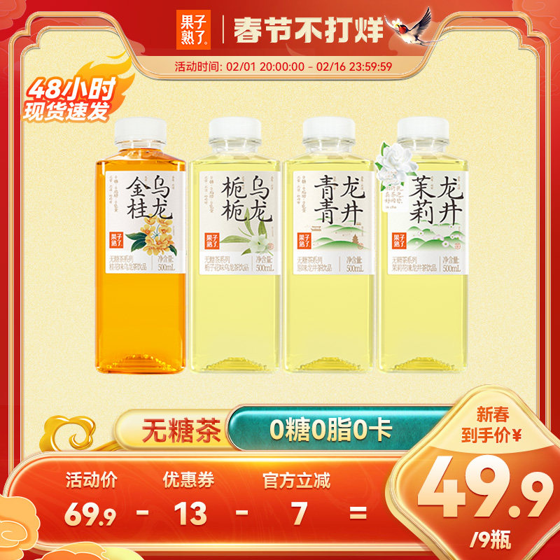 果子熟了无糖茶饮料栀栀乌龙茉莉龙井0糖0脂0卡500ml*9瓶
