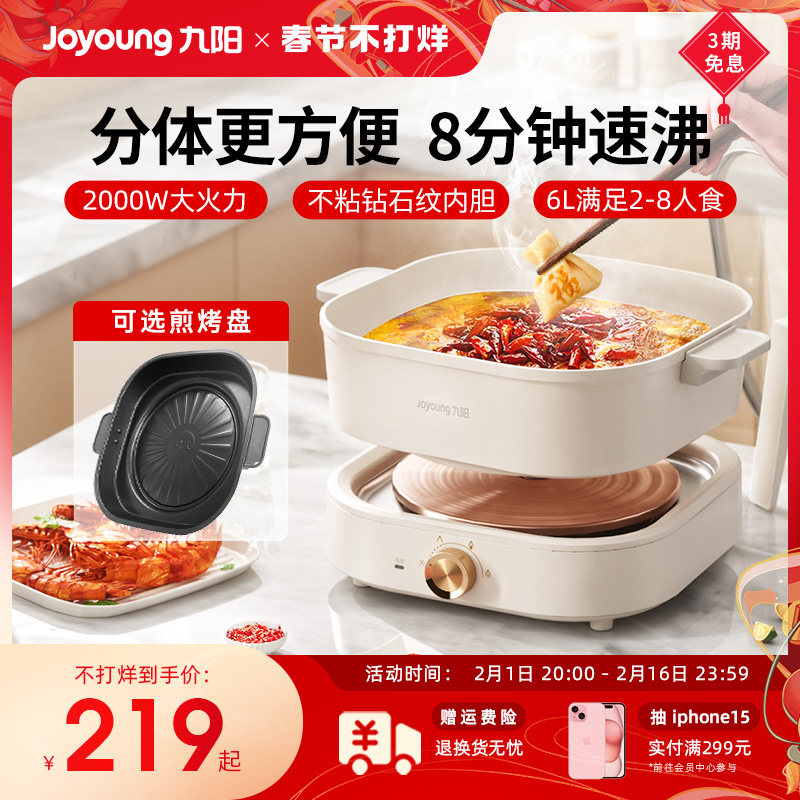 券 104元销量10九阳电火锅家用多功能鸳鸯料理锅分体式大容量电锅电煮锅电热锅