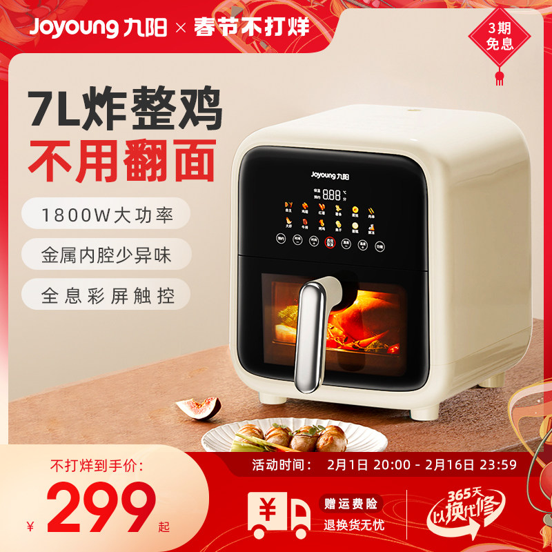 券 125元销量1000九阳空气炸锅家用新款大容量电炸锅蒸汽嫩炸烤箱7L彩屏触控V595