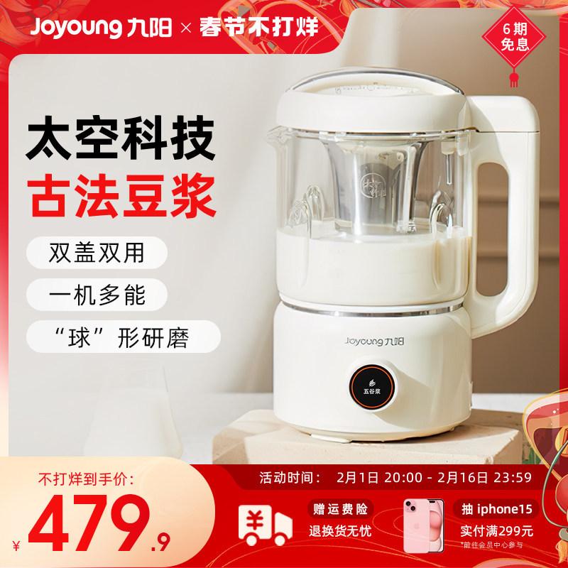 券 285元销量1000九阳破壁机小型家用加热豆浆机多功能五谷杂粮料理机