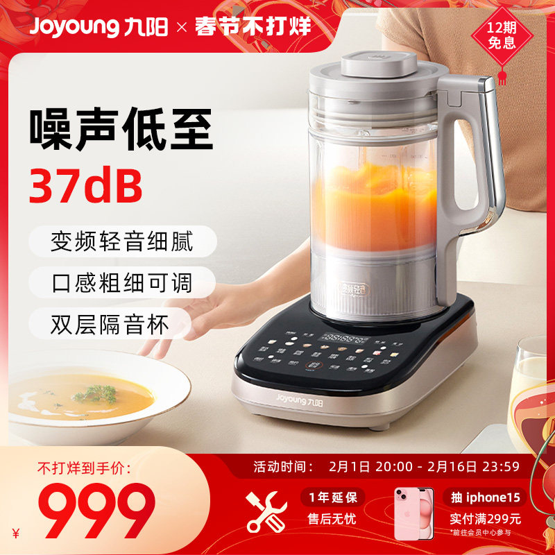 券 510元销量50九阳变频轻音破壁机家用豆浆机低音五谷杂粮辅食料理机官方旗舰B1