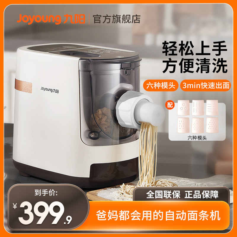 券 180元销量100九阳面条机家用全自动智能饺子皮压揉和面机小型多功能电动一体W3