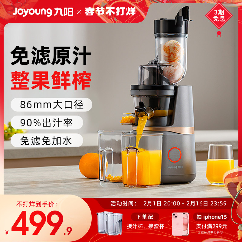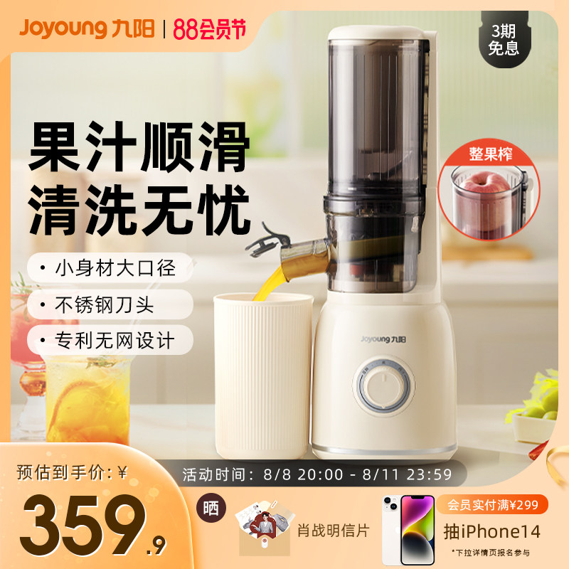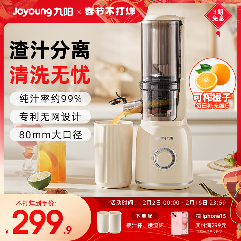 券 240元销量100九阳榨汁机汁渣分离原汁机家用全自动渣汁慢磨大口径易清洗果汁机