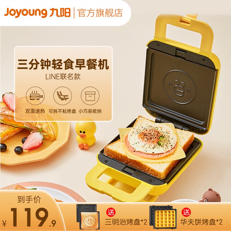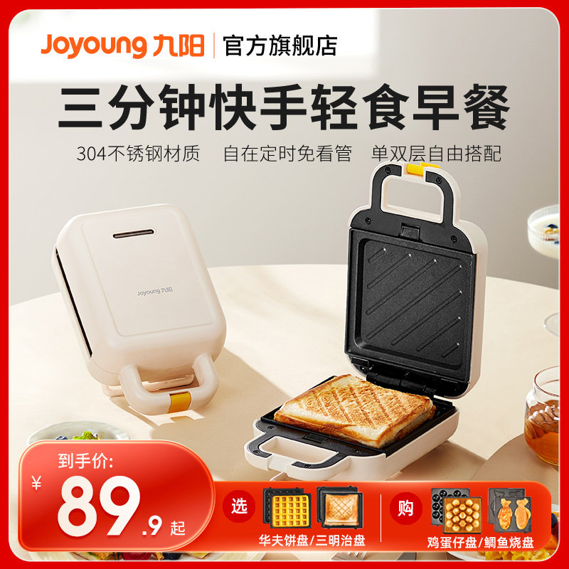 券 140元销量10九阳早餐机家用三明治机小型华夫饼机多功能烤吐司机全自动烤面包