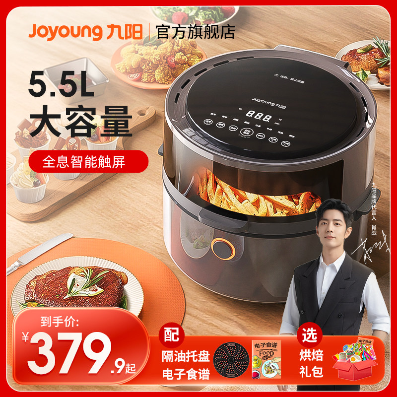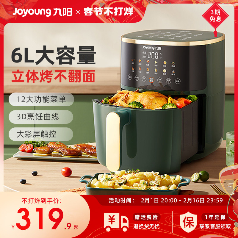 券 150元销量100九阳家用新款全自动空气炸锅6L大容量彩屏触控电烤箱电炸锅VF506